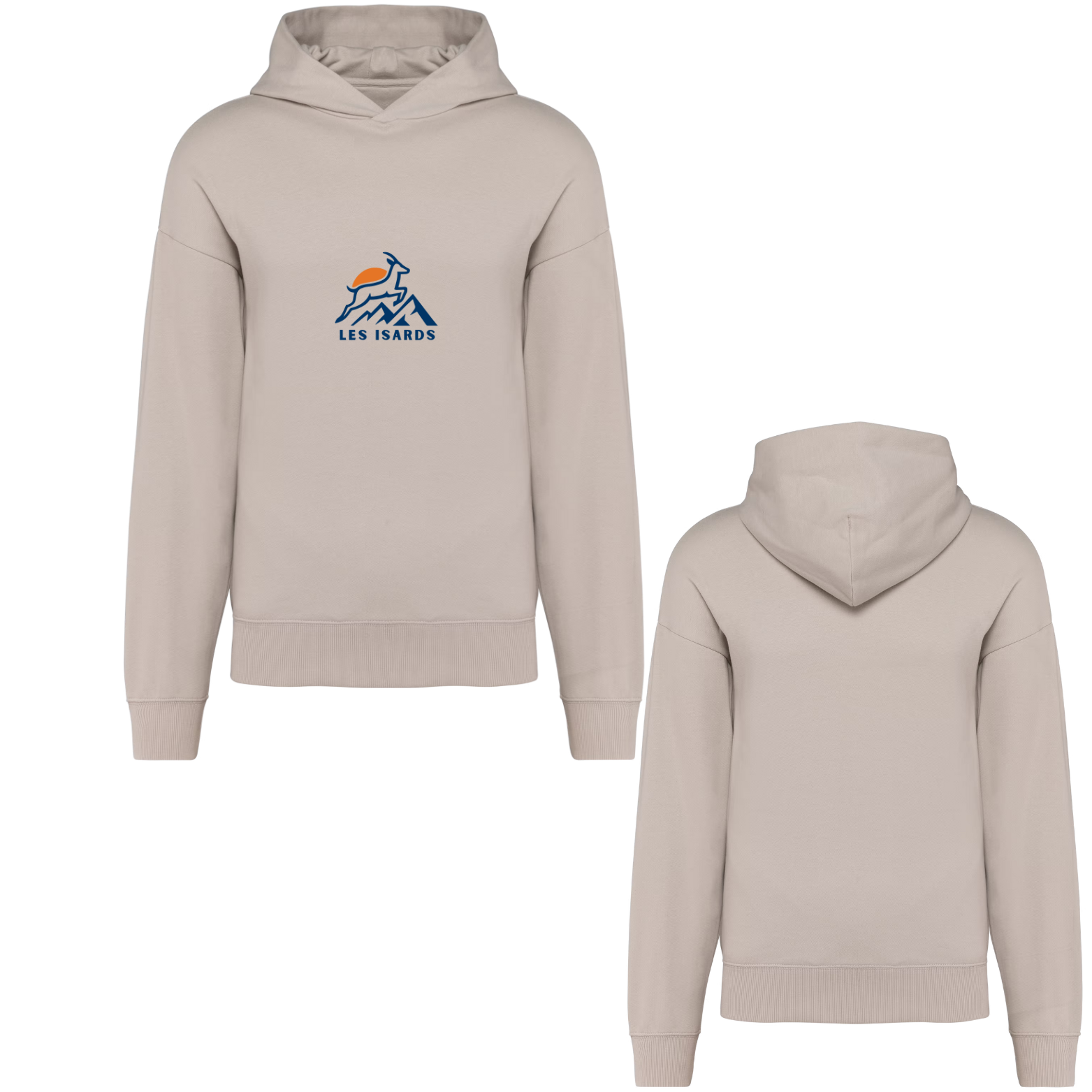 Sweatshirt à capuche molleton oversize unisexe. Logo bleu double sérigraphie